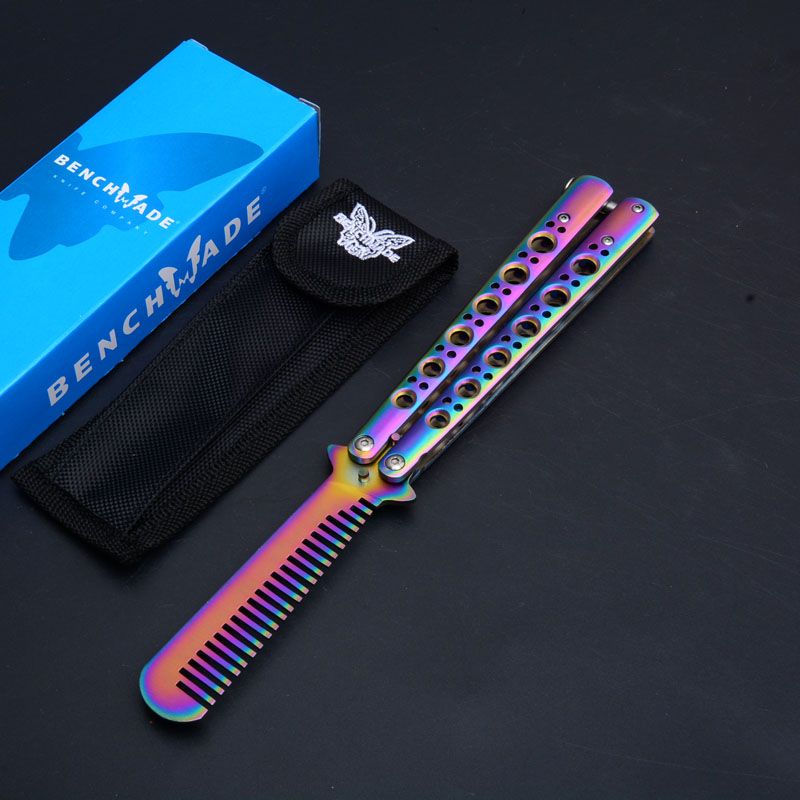 Butteryfly training knife curve (rainbow/red/black) with comb/trainer blade. We are proud to offer these great folders in all their variety. Azsnow new blue steel metal practice balisong butterfly trainer knife comb with sheath d14. 26 results for benchmade butterfly comb price and other details may vary based on size and color. (it seems like most people have already speculated this online, but i called benchmade to confirm the symbolism behind the logo, just to make sure.)